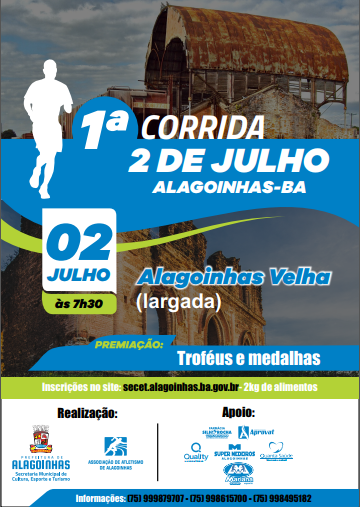 Em comemoração ao aniversário da cidade, a Prefeitura de Alagoinhas, através da Secretaria Municipal de Cultura, Esporte e Turismo (SECET), promove, no dia 2 de julho, uma corrida rústica no município.