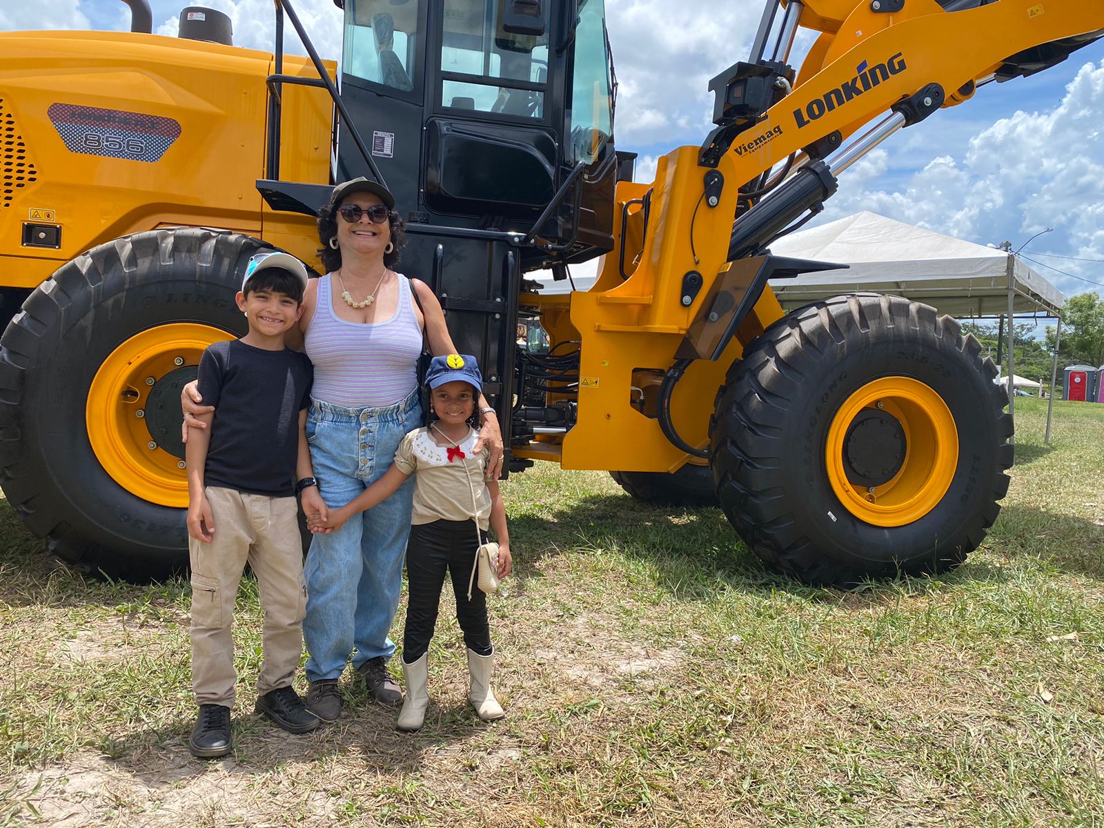 Solange Almeida acompanhada do neto e da sobrinha