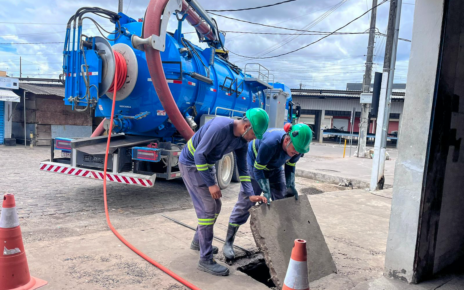 No Centro da cidade, o serviço de drenagem contou com o apoio de caminhão hidrovácuo, equipamento utilizado para sucção e desobstrução das redes de esgoto, a fim de minimizar os impactos provocados pelo acúmulo de água.