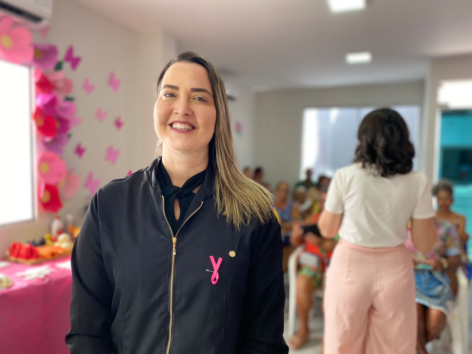 A Unidade de Reintegração faz parte da rede própria do município e trata, especialmente, da reabilitação motora, por meio da assistência fisioterápica. Os pacientes são captados via Central de Regulação da Secretaria Municipal de Saúde (Sesau). Atualmente, acontecem cerca de 300 atendimentos semanais, oriundos de agendamento. A coordenadora técnica da unidade, a fisioterapeuta Juliana Prata dos Santos Barbosa, pontuou que o Outubro Rosa se faz como um chamamento das pessoas a prestarem atenção em relação às questões do câncer de mama.